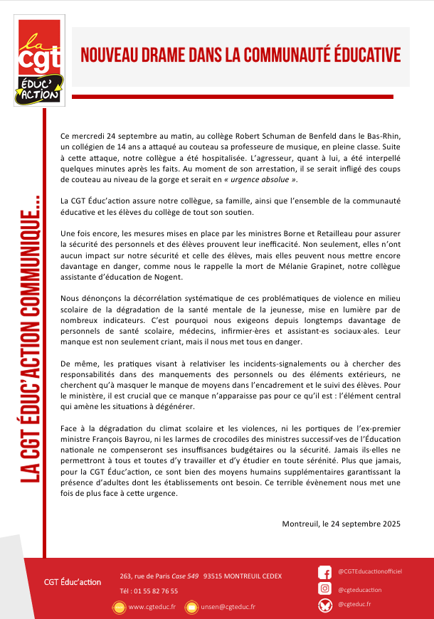 Un même syndicat pour tous les personnels de la maternelle à l’université : la CGT Educ’Action !