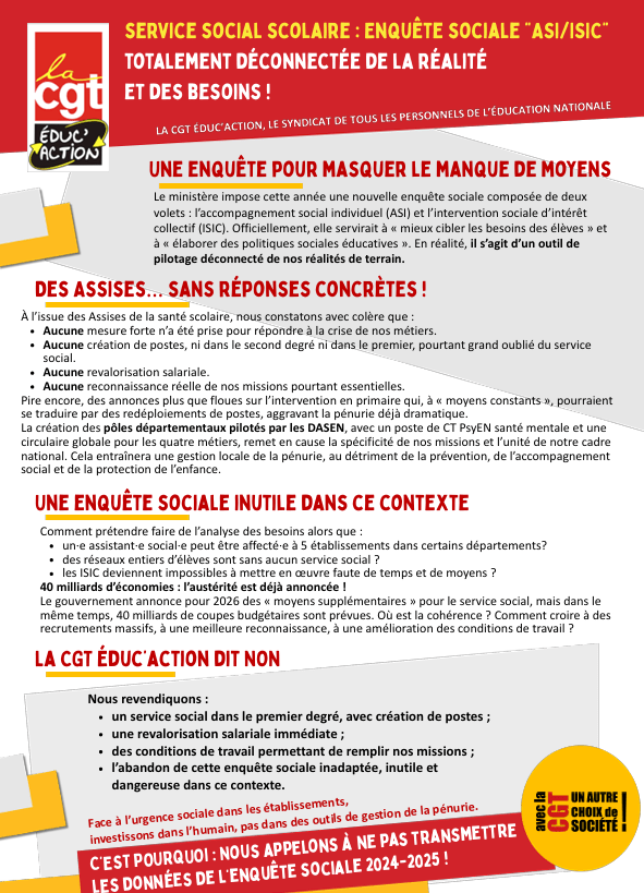 Ensemble, avec la CGT Educ’Action, exigeons :
