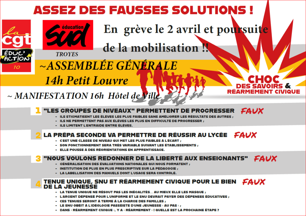 CONTRE LE « CHOC DES SAVOIRS » ET POUR L’ÉCOLE PUBLIQUE : NE RIEN LÂCHER !